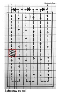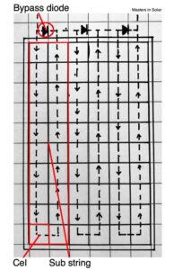 Como no es práctico y resulta costoso poner un diodo de derivación en cada célula, los paneles estándar (60 células) tienen 3, uno por cada 20 células. En este caso, las pérdidas por una hoja, suciedad o una simpática paloma se transforman en un 33%. Algunos fabricantes instalan 4 diodos reduciendo las pérdidas al 25%.